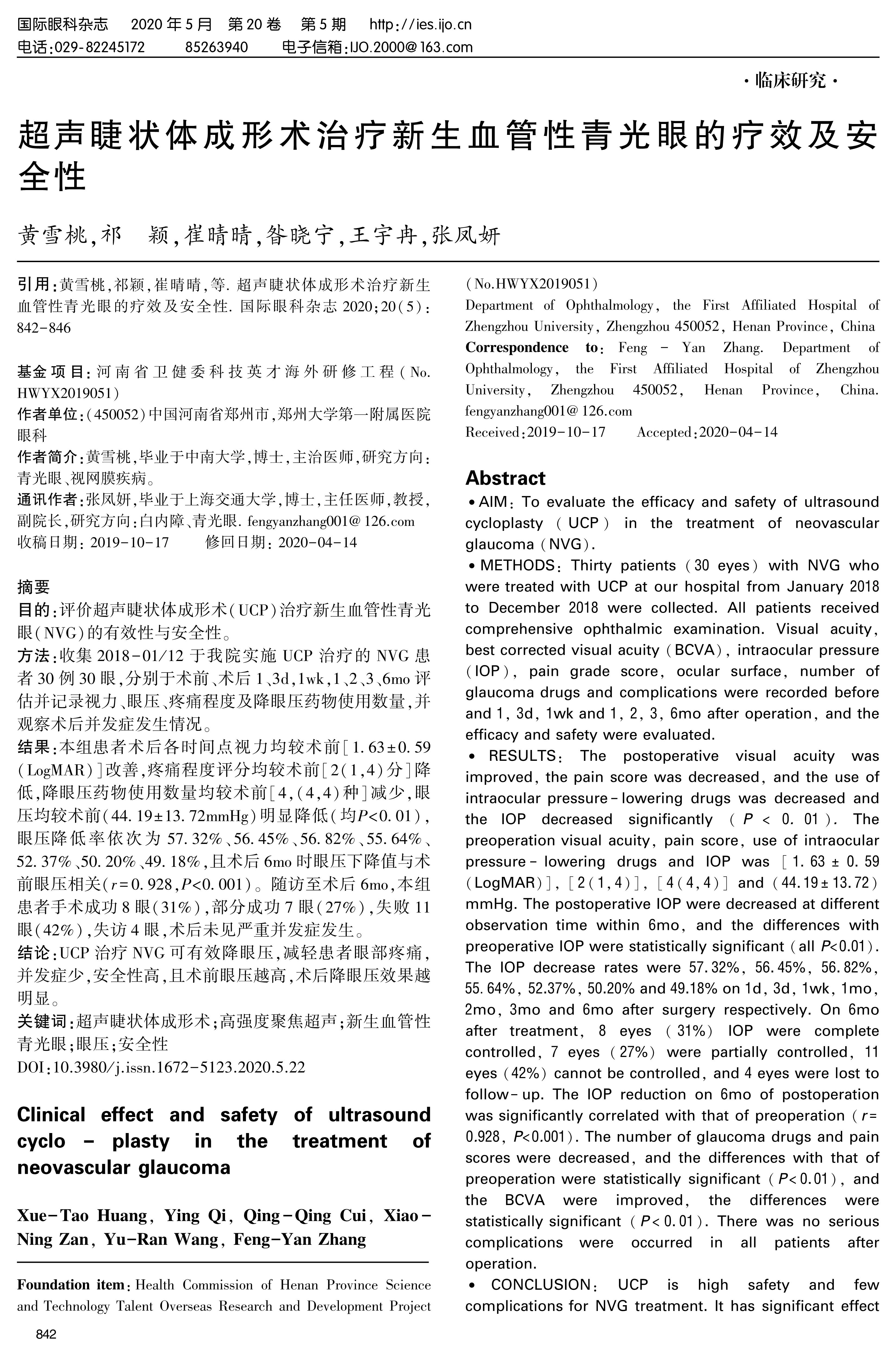 目的:评价超声睫状体成形术(UCP)治疗新生血管性青光眼(NVG)的有效性与安全性。