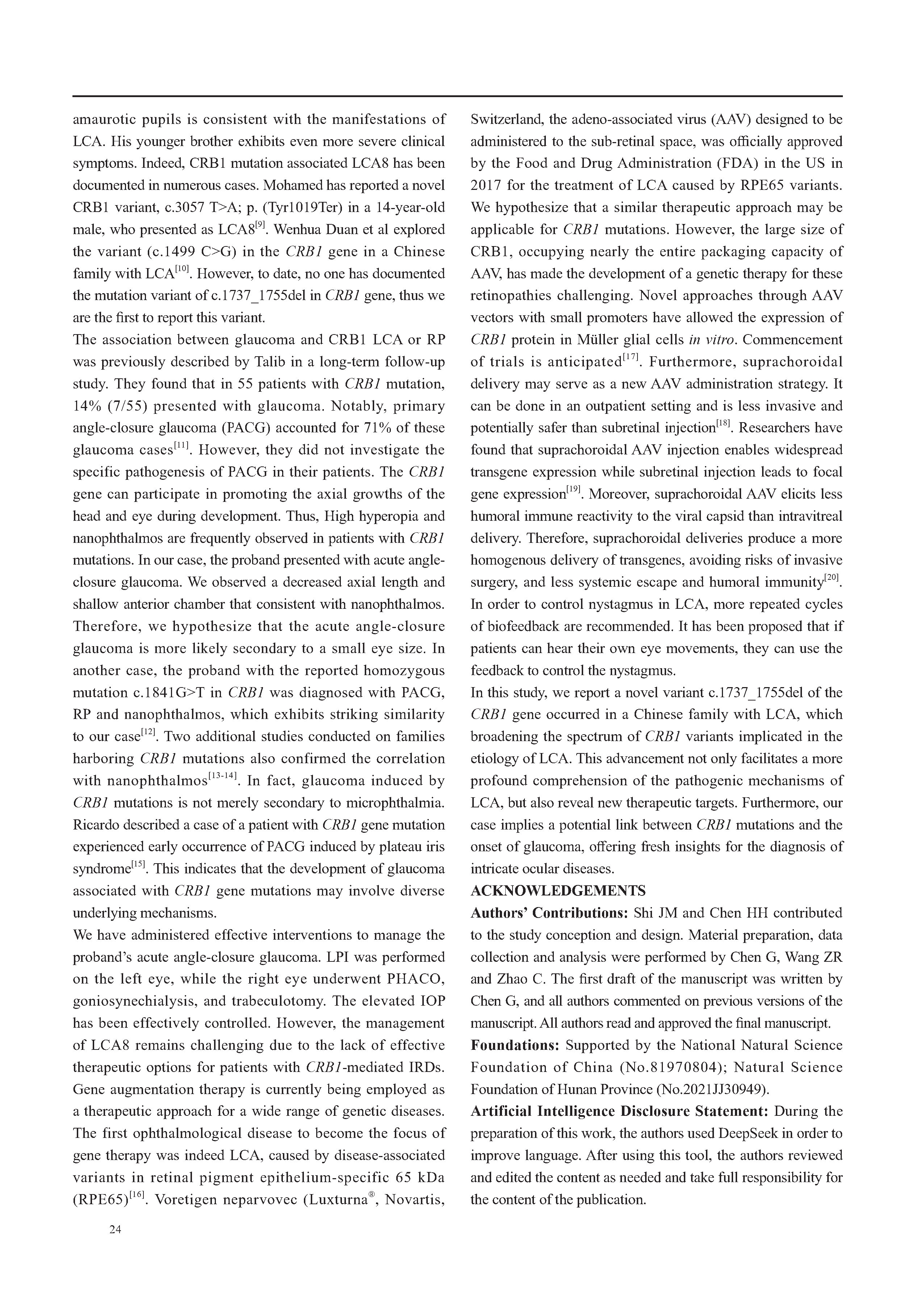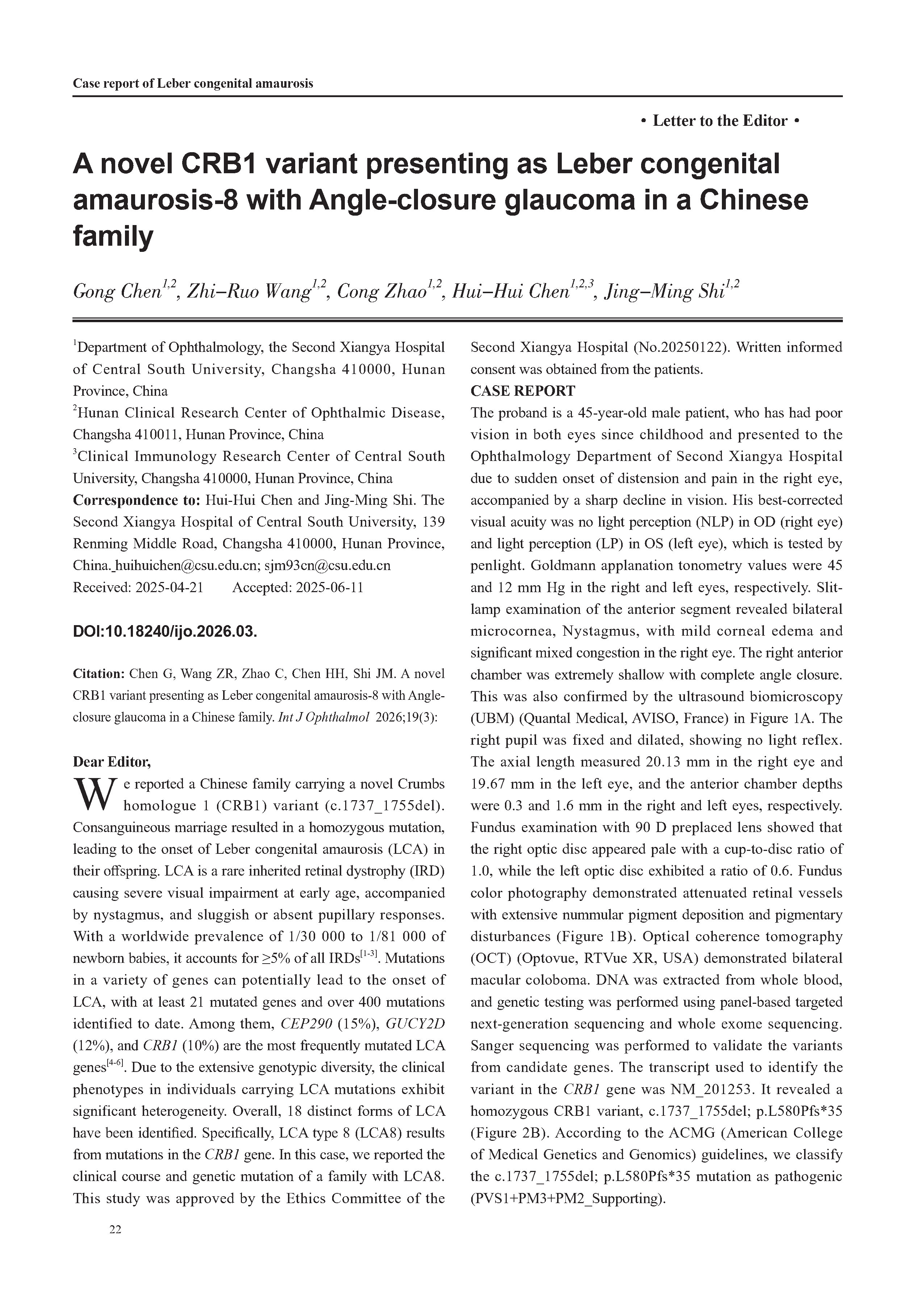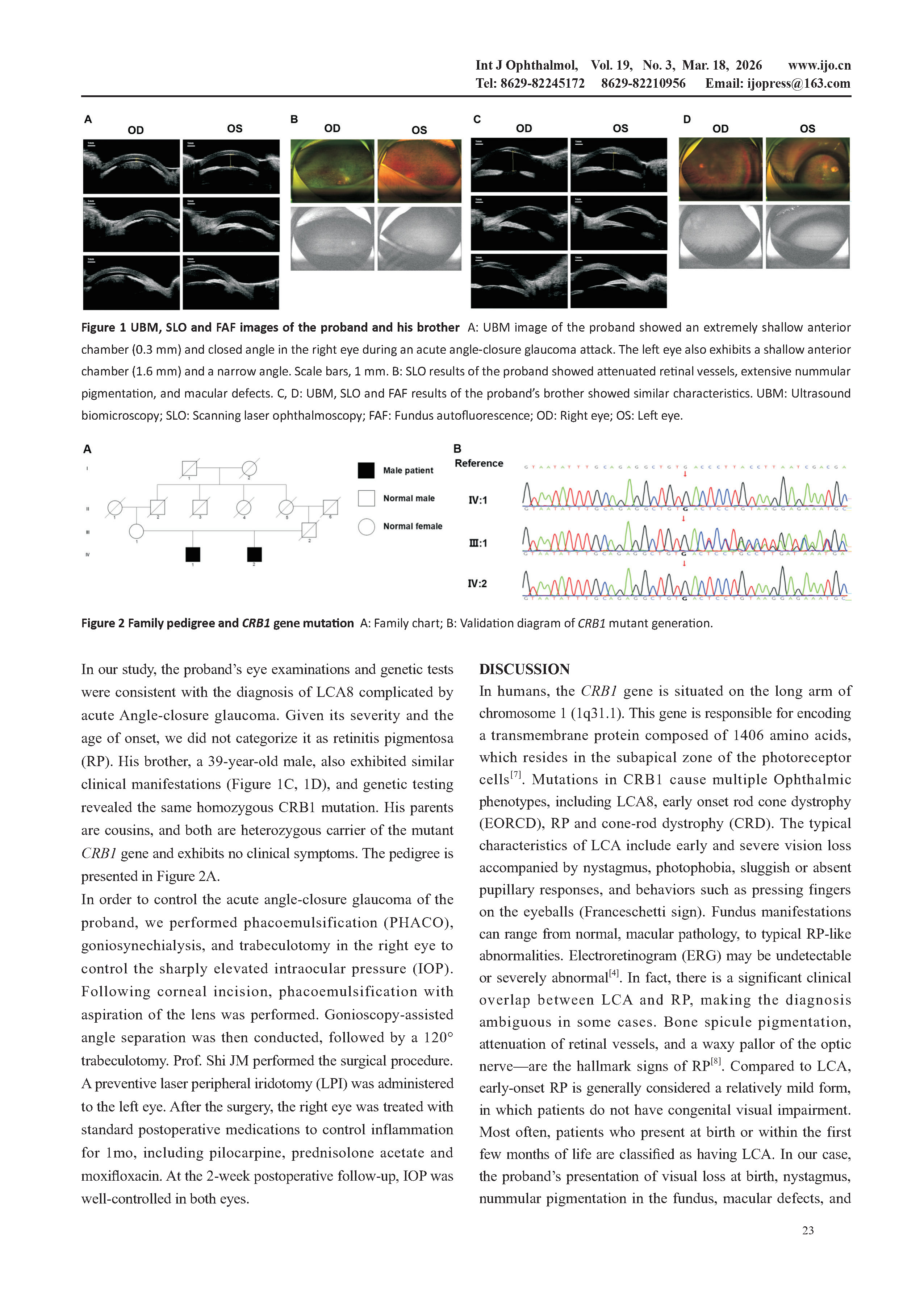 Priority Publication: A novel CRB1 variant presenting as Leber congenital amaurosis-8 with Angle-closure glaucoma in a Chinese family